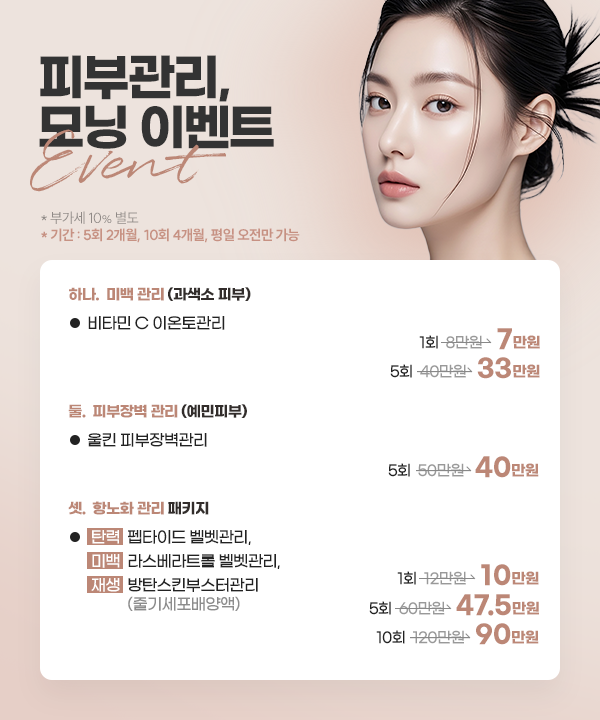- 피부에 레이저빔이 미세하게 나누어 조사되어 피부 손상과 다운타임을 줄이고, 흉터, 모공을 빠르게 개선시켜 주는 CO2 프락셔날 레이저