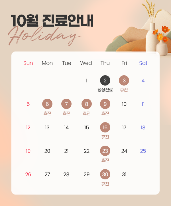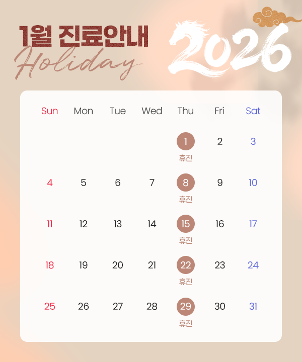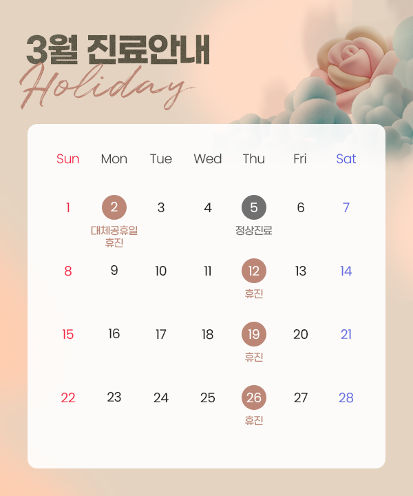 ※ 목요일, 일요일 휴진, 공휴일이 있는주는 목요일에 진료합니다.