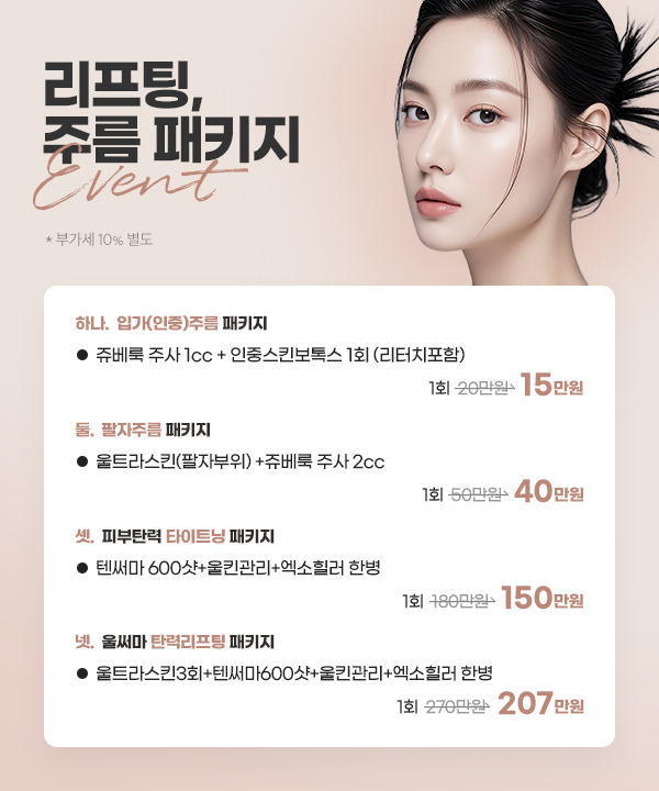 - 늘어진 근막을 집중 치료하고 진피층의 콜라겐을 재생시켜 리프팅, 탄력, 주름, 페이스라인을 개선해주는 고강도 집속 초음파 장비