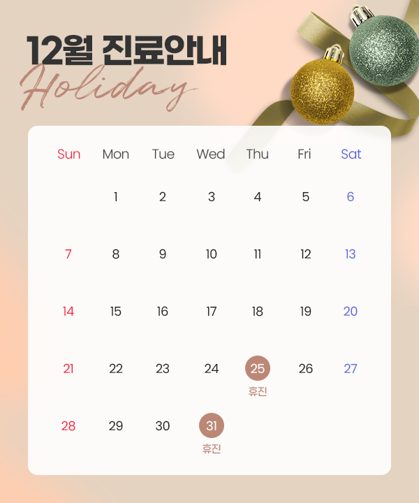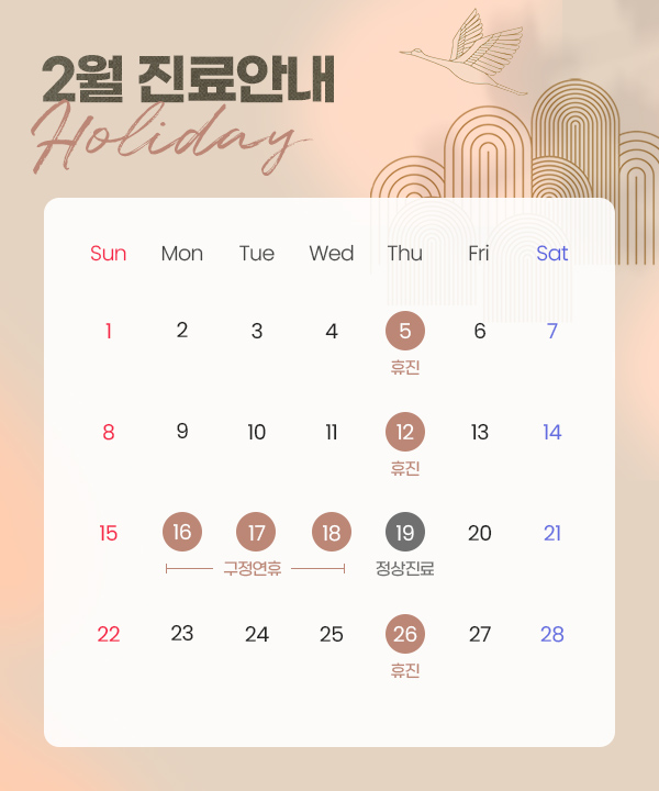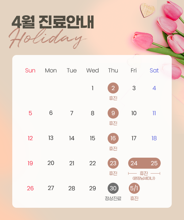 ※ 목요일, 일요일 휴진, 공휴일이 있는주는 목요일에 진료합니다.