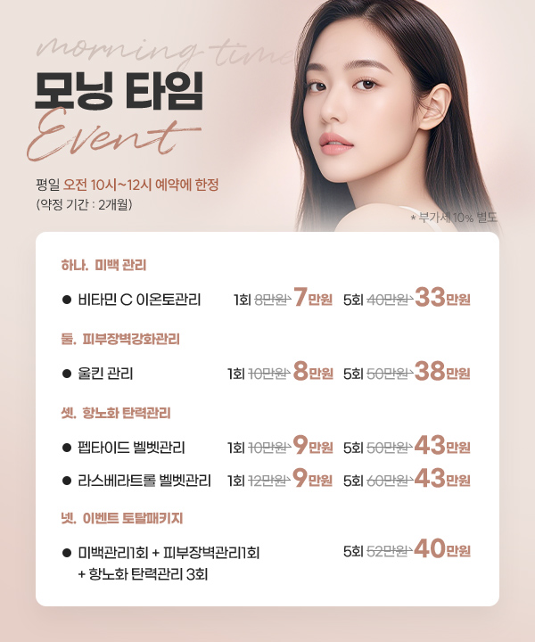 - 피부에 레이저빔이 미세하게 나누어 조사되어 피부 손상과 다운타임을 줄이고, 흉터, 모공을 빠르게 개선시켜 주는 CO2 프락셔날 레이저
